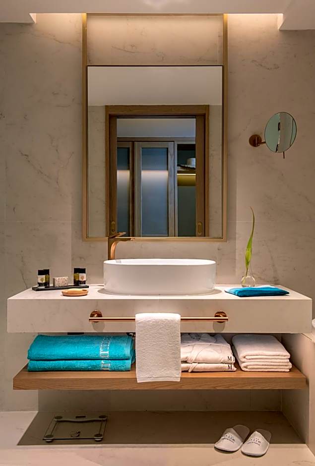 These superior double rooms feature a king-sized bed and a marble bathroom. Guests can relax on the balcony, which offers a sea view. Additional amenities in this room include a daily champagne service.